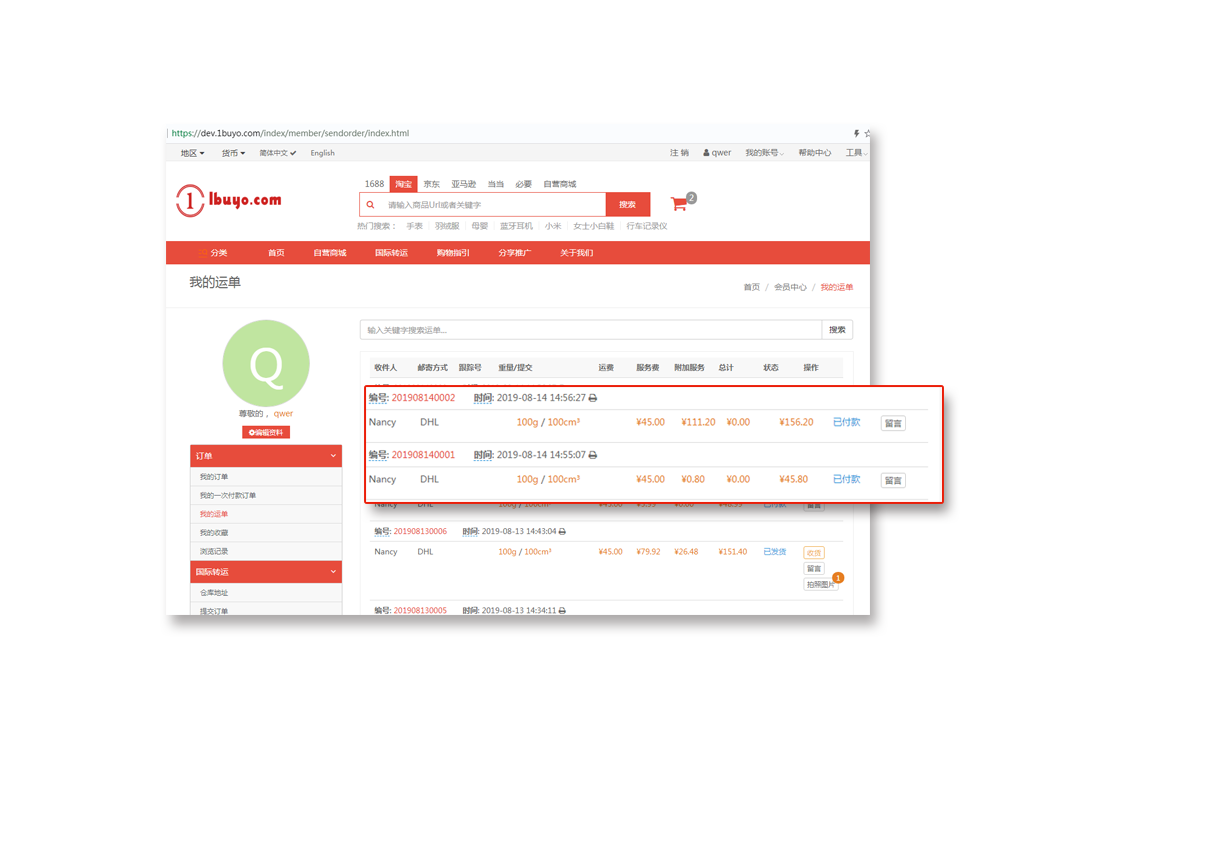可以在会员中心我的运单中查询国际物流轨迹信息